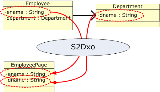 S2Dxoは,上記3つのJavaBeansに対して,以下の図のような変換を行います.