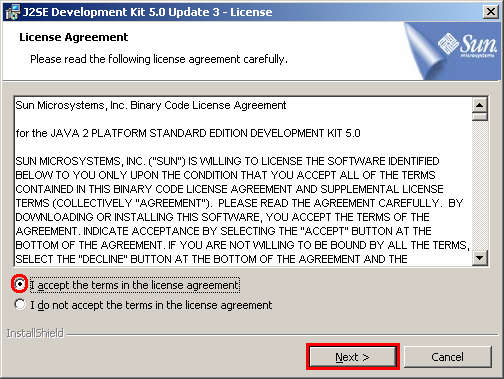 Execute the downloaded file jdk-1_5_0_05-windows-i586-p.exe.