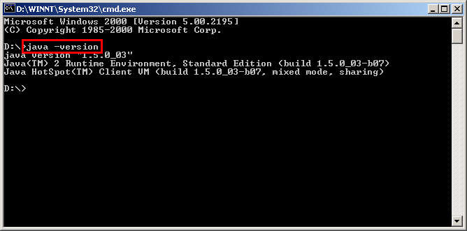 In the command console window, type in java -version and press the Enter key to show the version of Java that is installed on your computer.