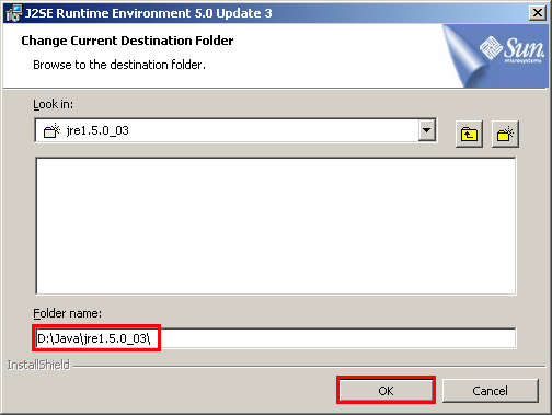 Change "Folder name" to directory create "Java" directory in the root directory by deleting "Programs Files". Select the OK button.