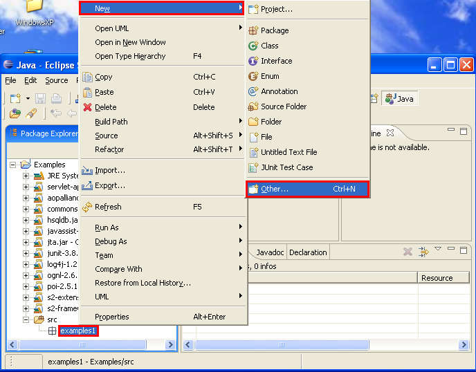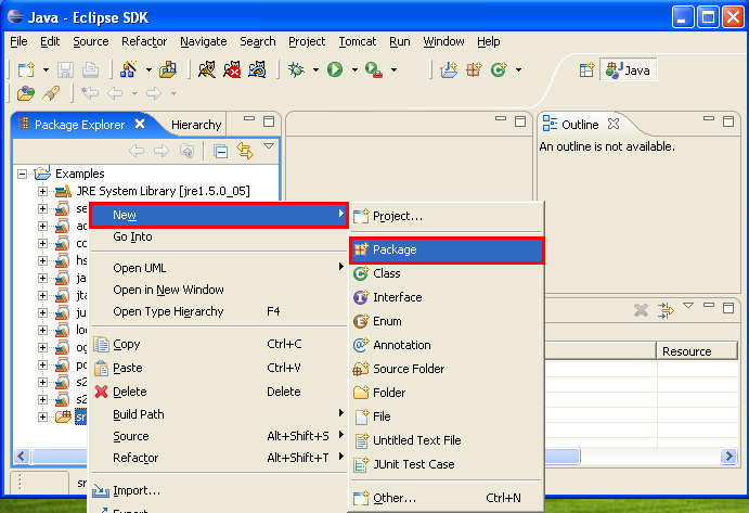 To create a new package under "Examples", right click on the src package and select New - Package from the context menu.