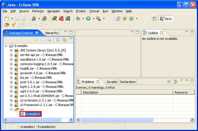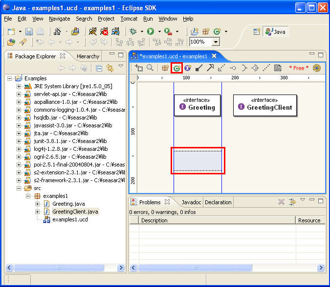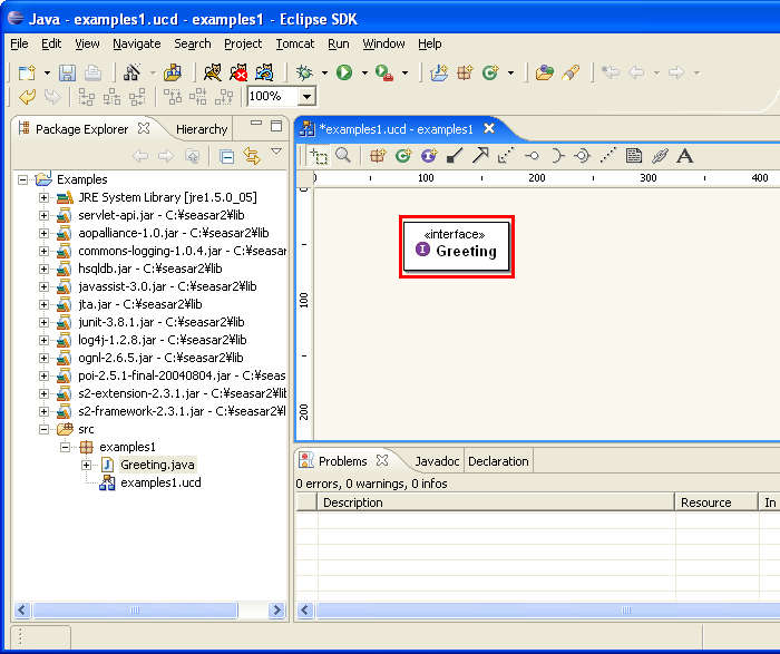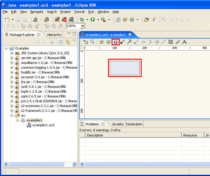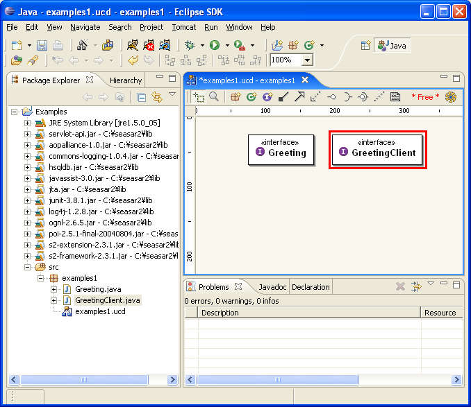 We'll create a package "examples1". We'll also be using the same example as in the Moving on to Seasar and focus on using UML plugin.