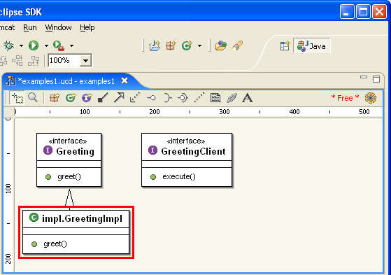 a "impl.GreetingImpl" box will be displayed with an arrow pointing to "Greeting" as in the following diagram.