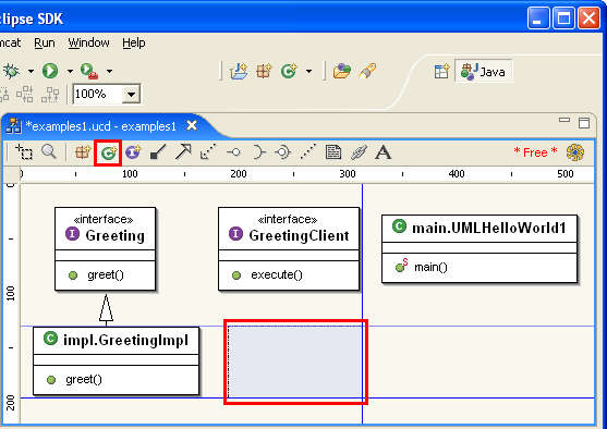 Selecth the icon and drag a rectangular area again to define an implementation of "GreetingClient".