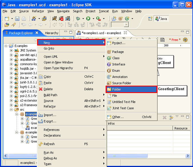 Right click on examples1 under the "src". Select New - Folder in the context menu.