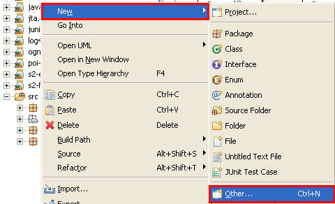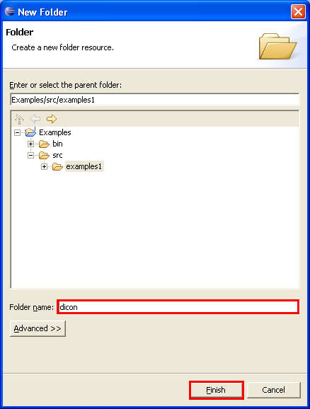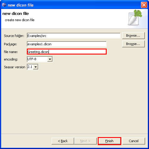 Right click on the examples1.dicon folder we just created. Select New - Other....