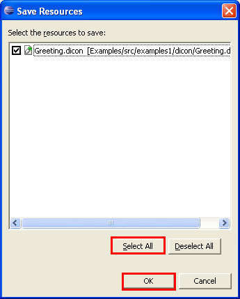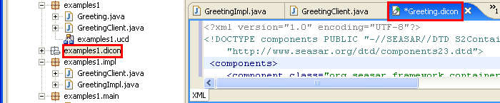 Select the examples1.dicon and select the Greeting.dicon tab.